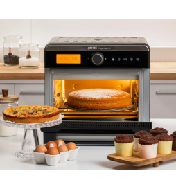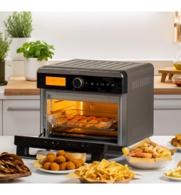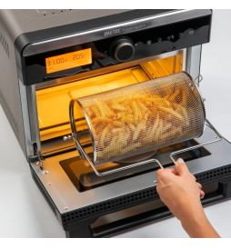 Friteze me ajër shumëfunksionale me 12 programe gatimi të paracaktuara, i kompletuar me aksesorë dhe panel kontrolli me prekje. Ngrohje e shpejtë, në vetëm 4 minuta.