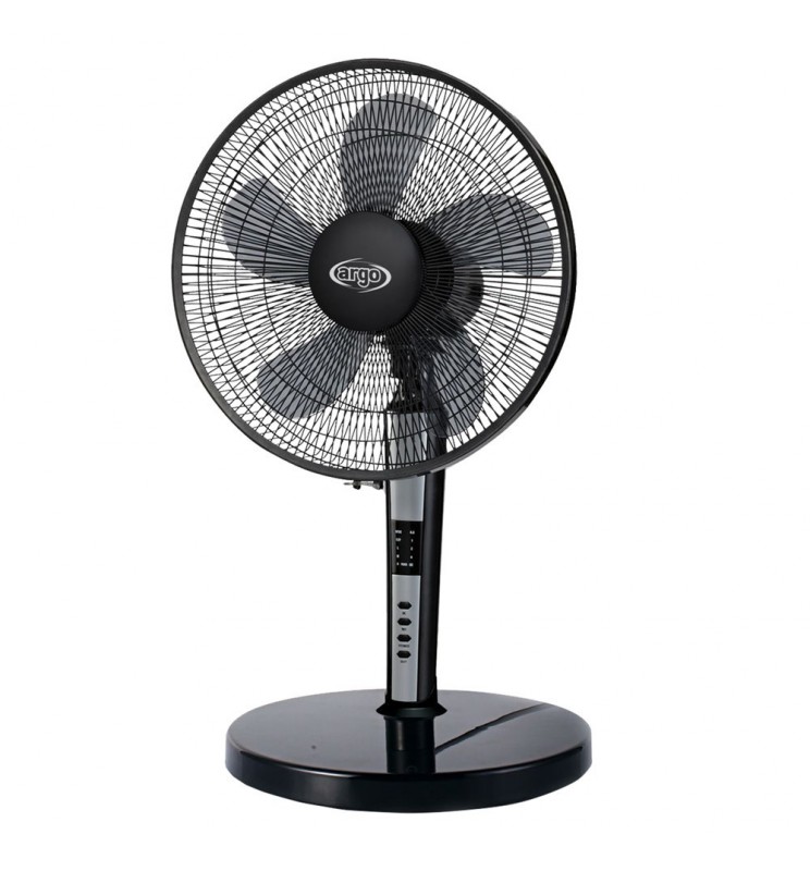 Ventilator tavoline Argo me një dizajn novator dhe elegant. Elikë me 5 fletë prej matriali AS, materiale me cilësi të lartë, me diametër 40 cm. Dizajn të veçantë të skarës, i karakterizuar nga 150 fije metalikë. Kënd i rregullueshëm për përshtatshmëri maksimale ndaj nevojave individuale. Ventilatori është i pajisur me ekran LED dhe telekomandë infra të kuqe. Ka 3 shpejtësi ventilimi ku mund të përzgjidhen nga paneli i kontrollit dhe nga telekomanda. Vjen 3 funksione: Normal, natyror dhe silencioz për rehati maksimale në çdo kohë.